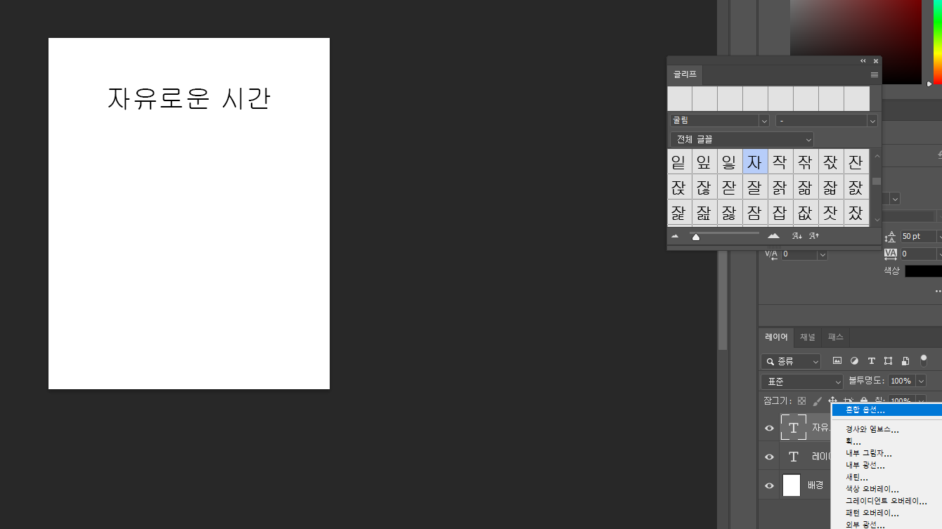 레이어 모양 앞에 네모칸 더블클릭하면 글자 색상 변경 가능