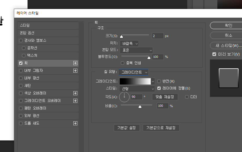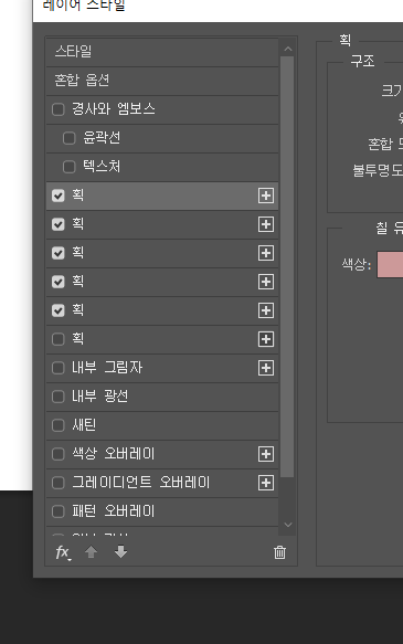 위와 같이 획이나 다른 옵션들이 정신없이 추가된 경우