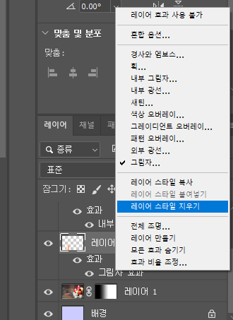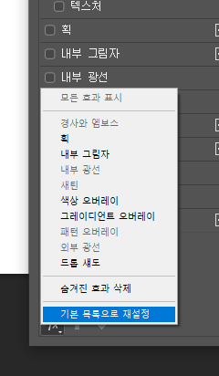 효과의 경우 알트 누르고 옮기면 다른 레이어에 효과 복사 가능해짐