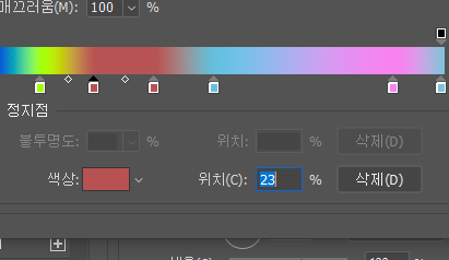 색상 클릭하고 아래로 밀어댕기면 색상 삭제 or delete로 삭제 가능