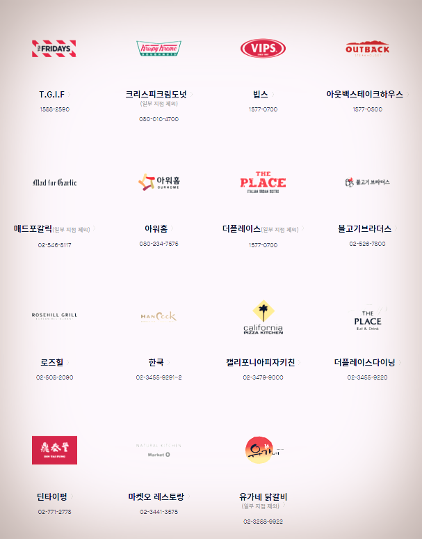 불고기브라더스, 로즈힐, 한쿡, 캘리포니아피자키친, 더플레이스다이닝, 딘타이펑, 마켓오레스토랑,