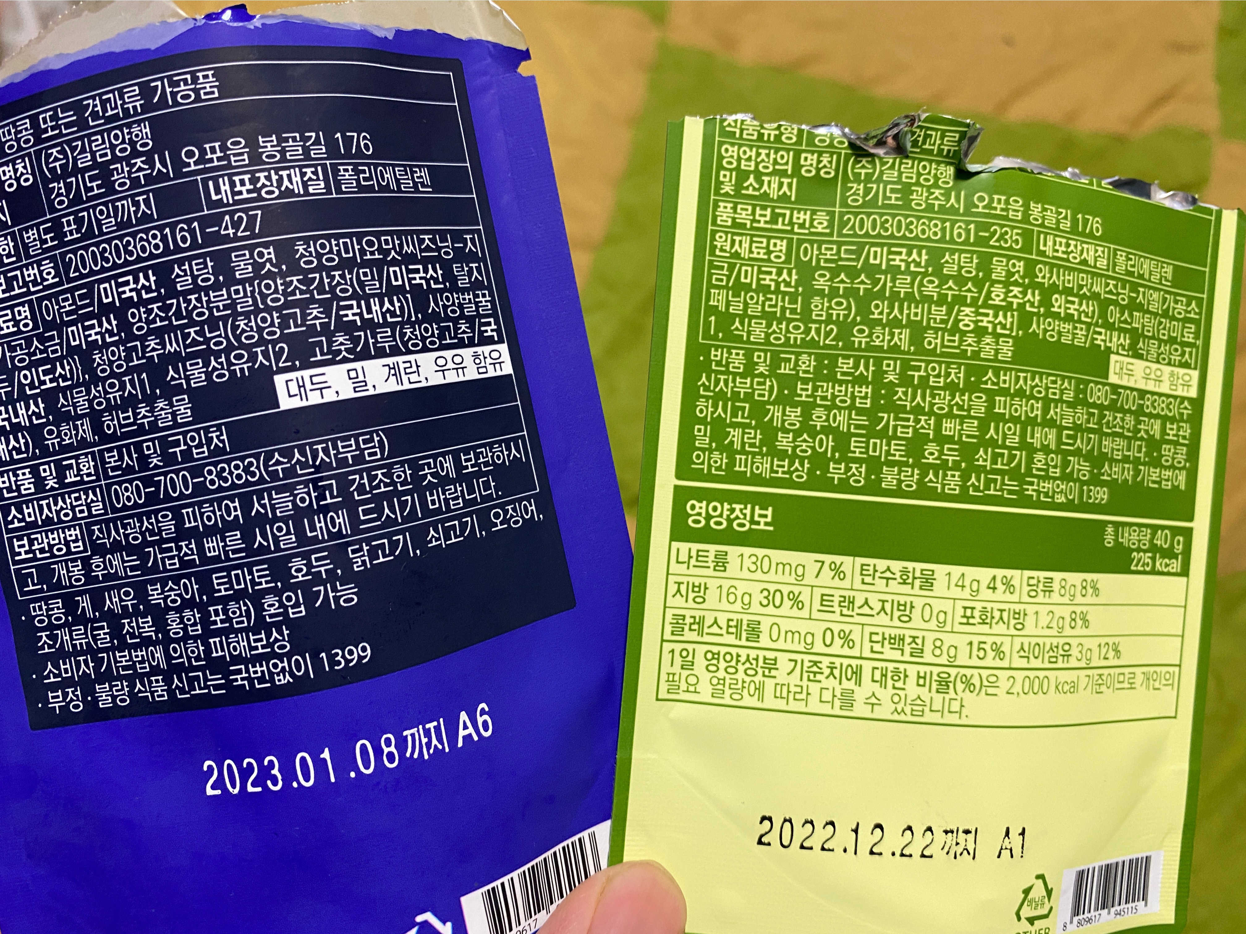 길림 와사비맛 아몬드, 청양마요 아몬드 맛 비교 (요기요 gs25)