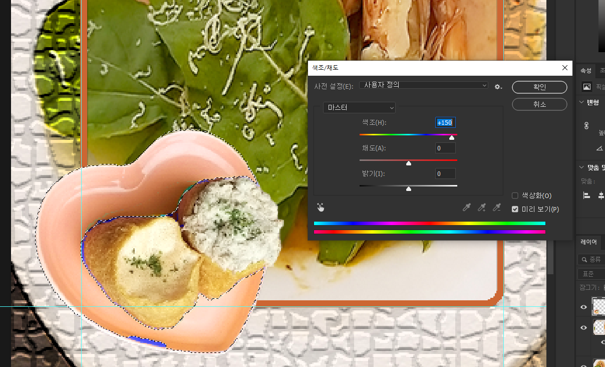 1. 레이어 2 지정하고 누끼로 그릇만 잡아줌