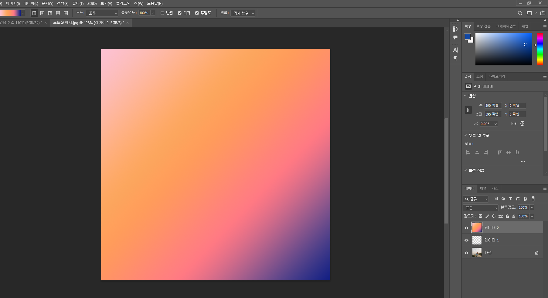 레이어 하나를 그라디언트로 색 넣어줌