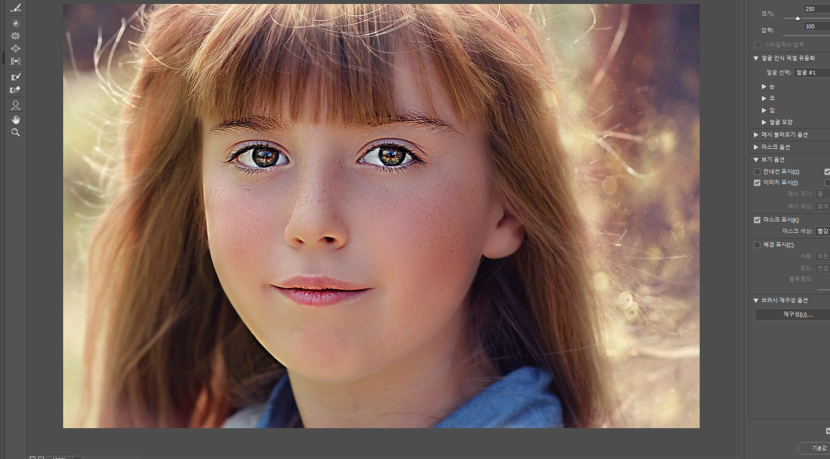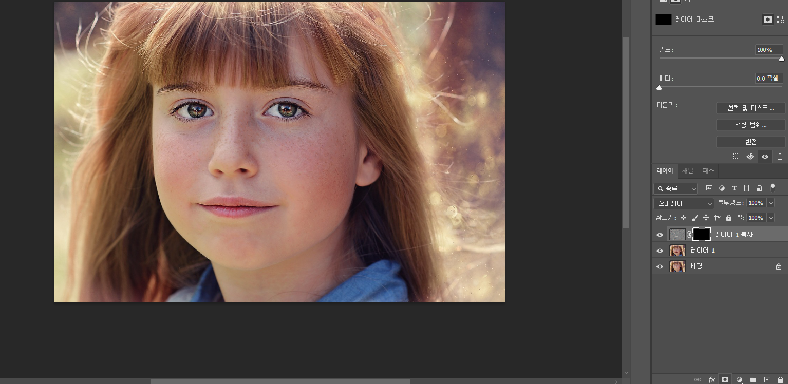 알트 누르고 레이어 마스크 눌러주면 검정색 마스크 나옴 (뽀샵 효과 사라짐)