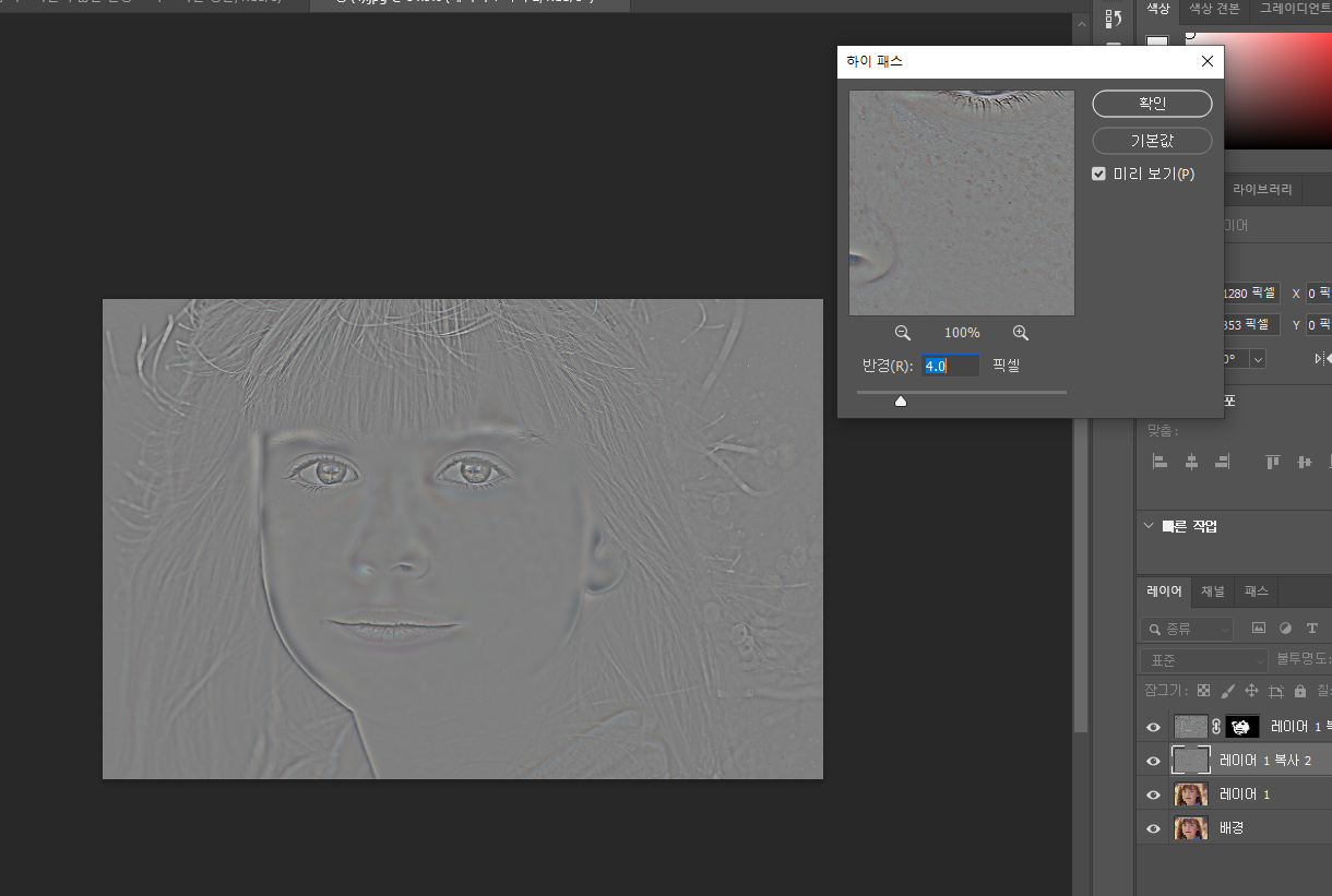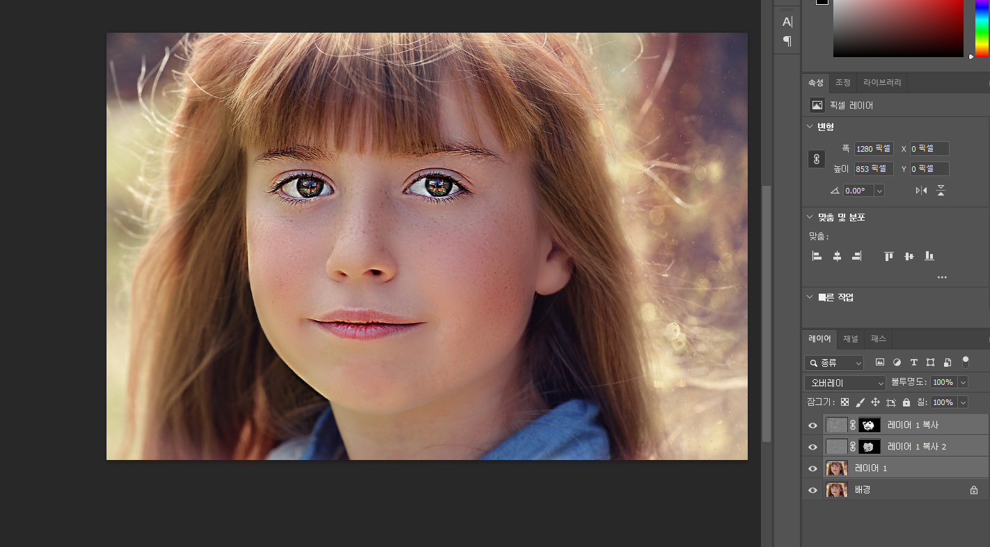 피부 보정은 레이어를 쌓아가면서 보정해주는게 좋다