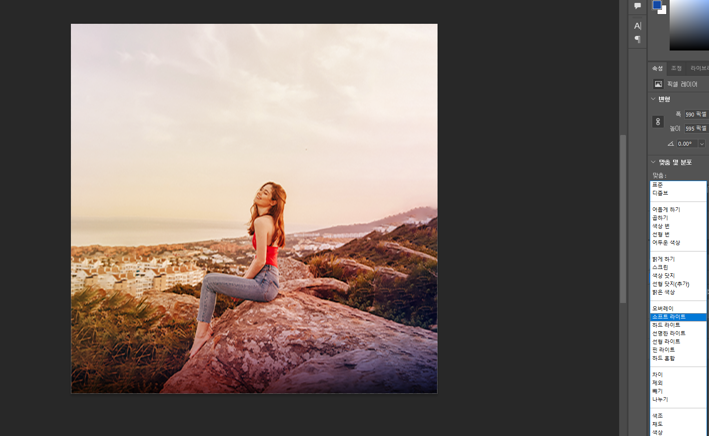 표준에서 선명한 라이트로 변경 해주고 불투명도 60%정도로 해서 바꿔줌