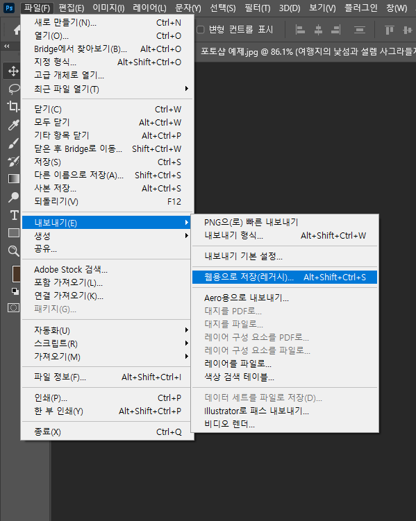 웹용으로 저장 레거시
