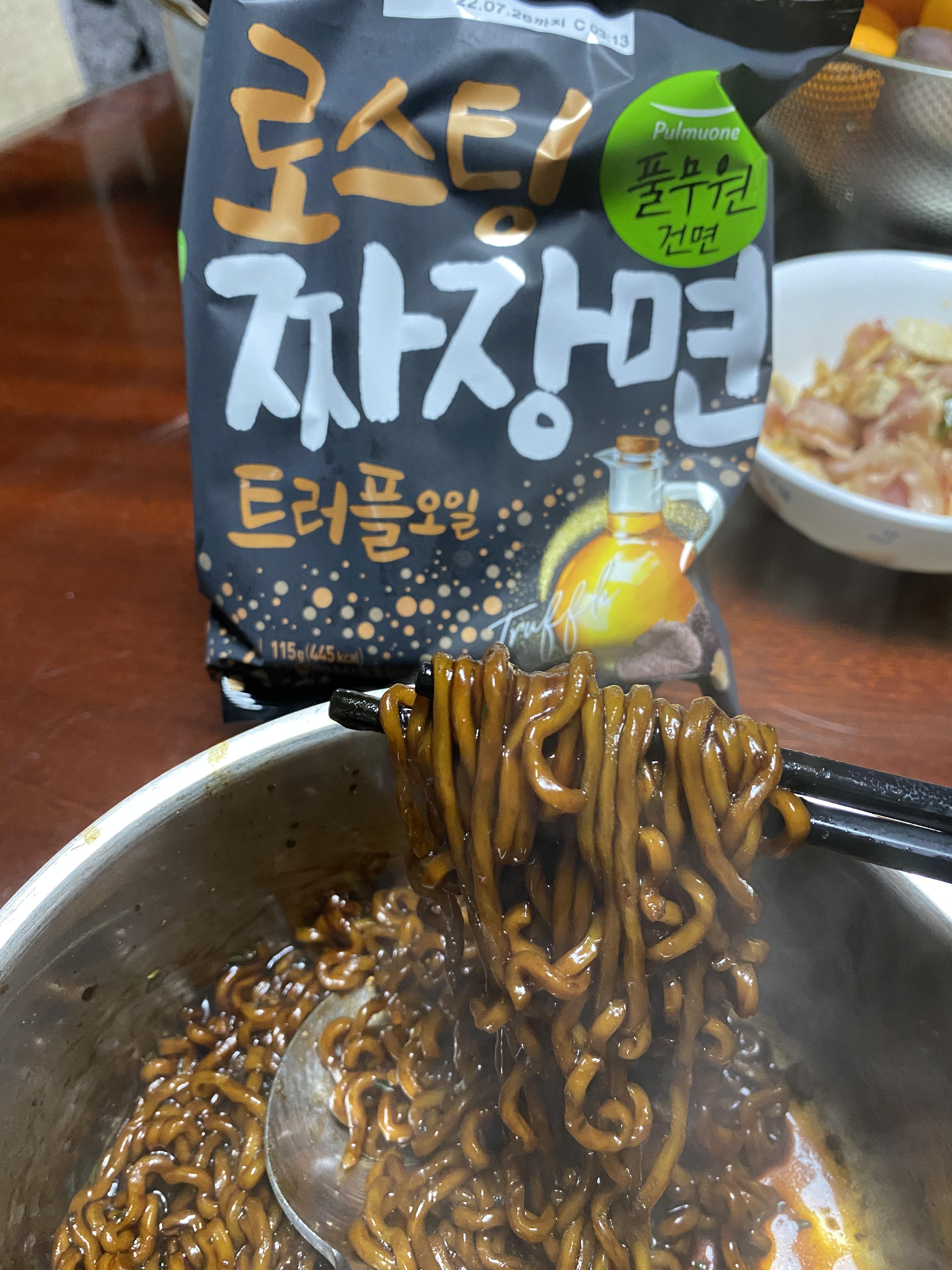 바로 풀무원 건면에서 나온 로스팅 짜장라면 트러플 오일 입니다
