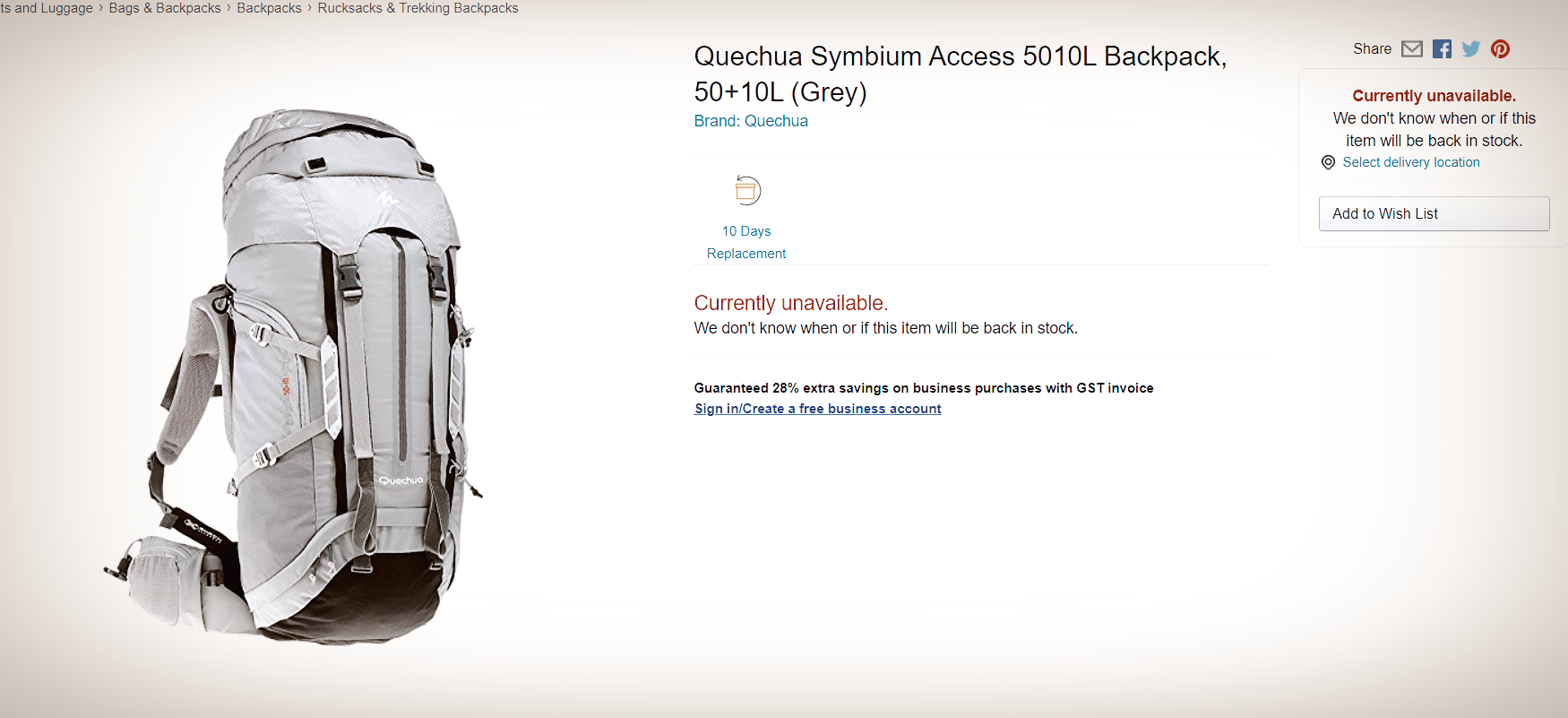 제품의 이름은 Quechua Symbium Access 5010L Backpack, 50+10L (Grey)