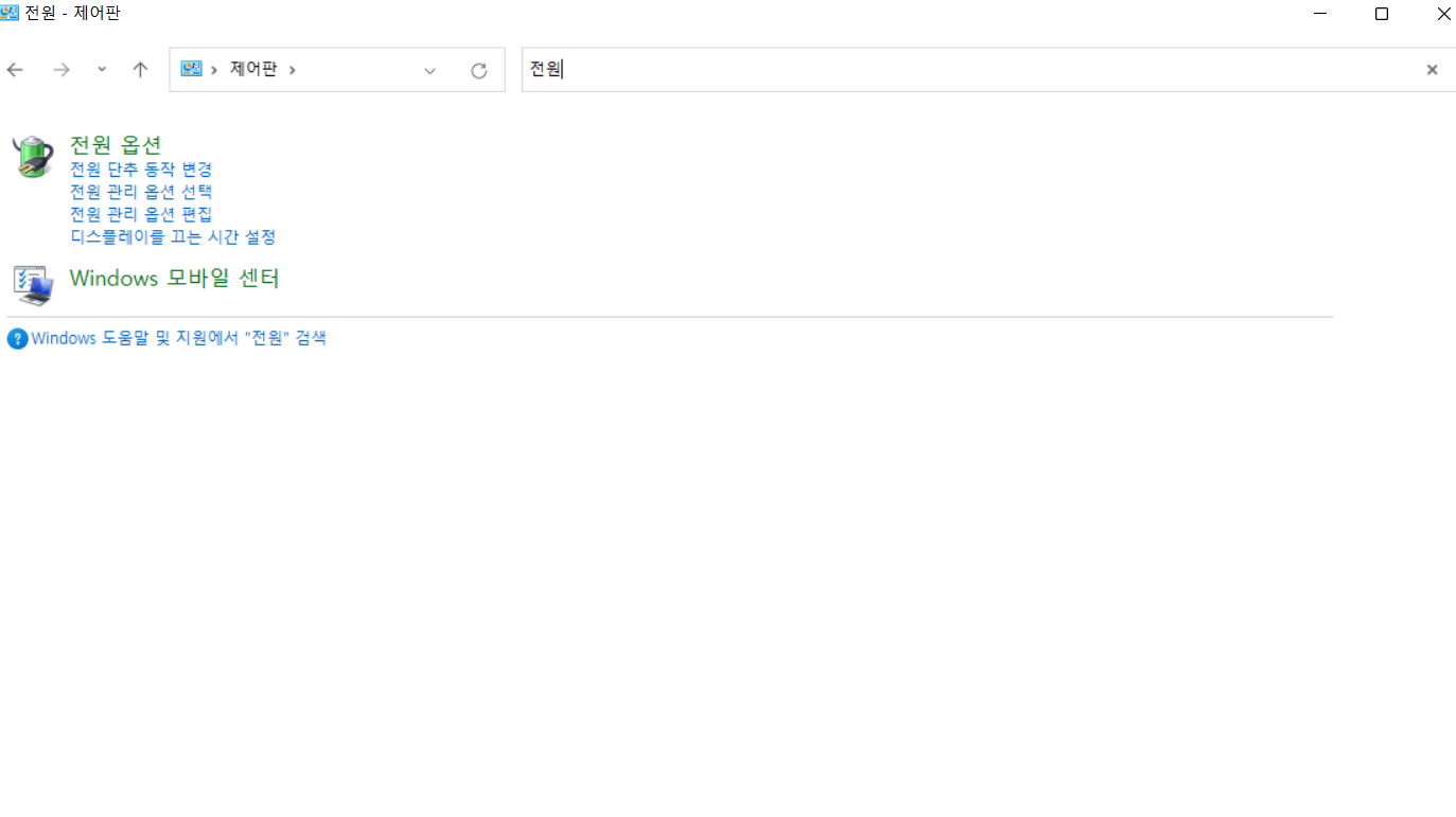 2. 제어판 검색 창에서 전원 입력 -> 전원 옵션 클릭