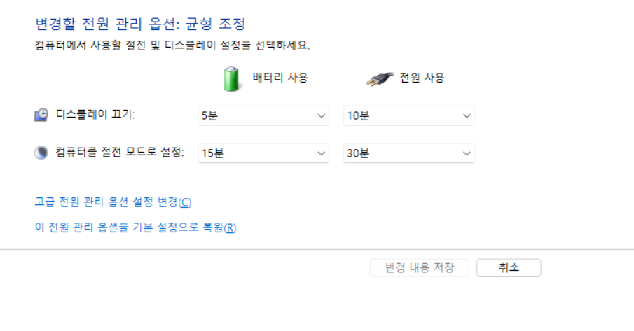 컴퓨터 자체적으로 발열을 줄이는 방법으로 바로 전원 옵션 설정을 바꾸면 됩니다