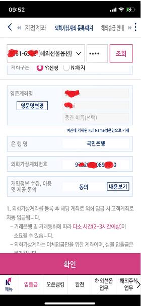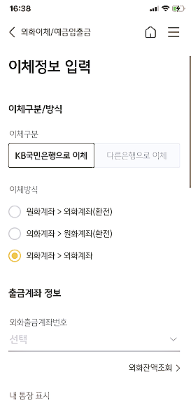 3. 국민은행 외화 예금 통장에서 키움 증권 외화가상계좌로 송금하기