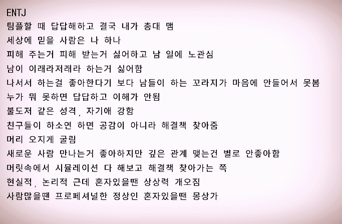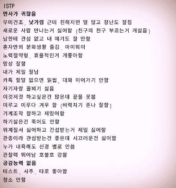 위에 검사 결과를 토대로 나의 엠비티아이 유형이 어떤건지 한번 알아볼까 합니다.