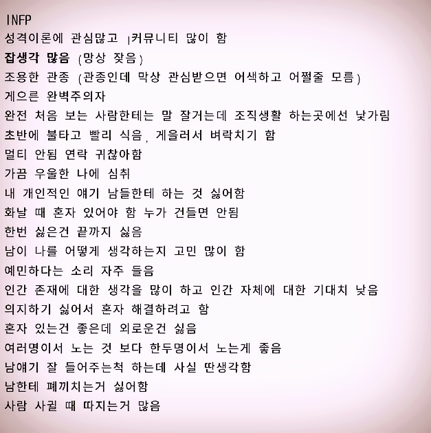 위에 Sakinorva 버전의 MBTI로 체크 후 아래 분석을 봐주시면 될 것 같습니다