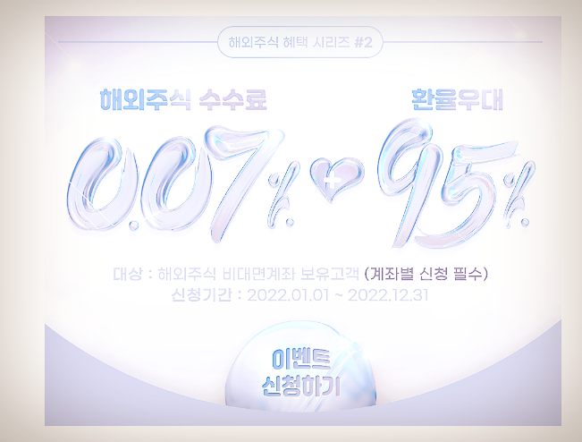 키움증권 -> 이벤트 -> 해외주식 거래수수료 0.07% + 환전우대 최대 95% 이벤트