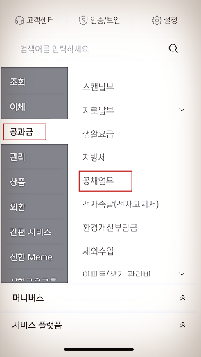 메인 메뉴에 접속 후, 공과금 -> 공채업무 접속하시면