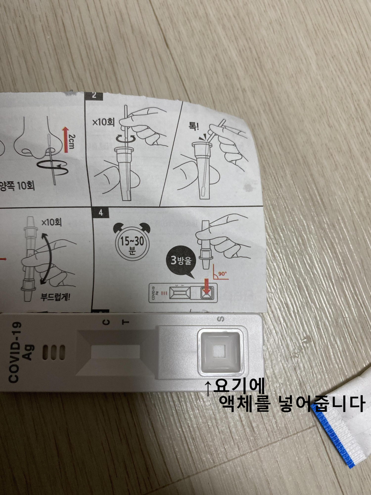 그리고 15분에서 30분 기다렸다가 검사 키트에 액을 넣어주면 검사가 된다고 합니다.