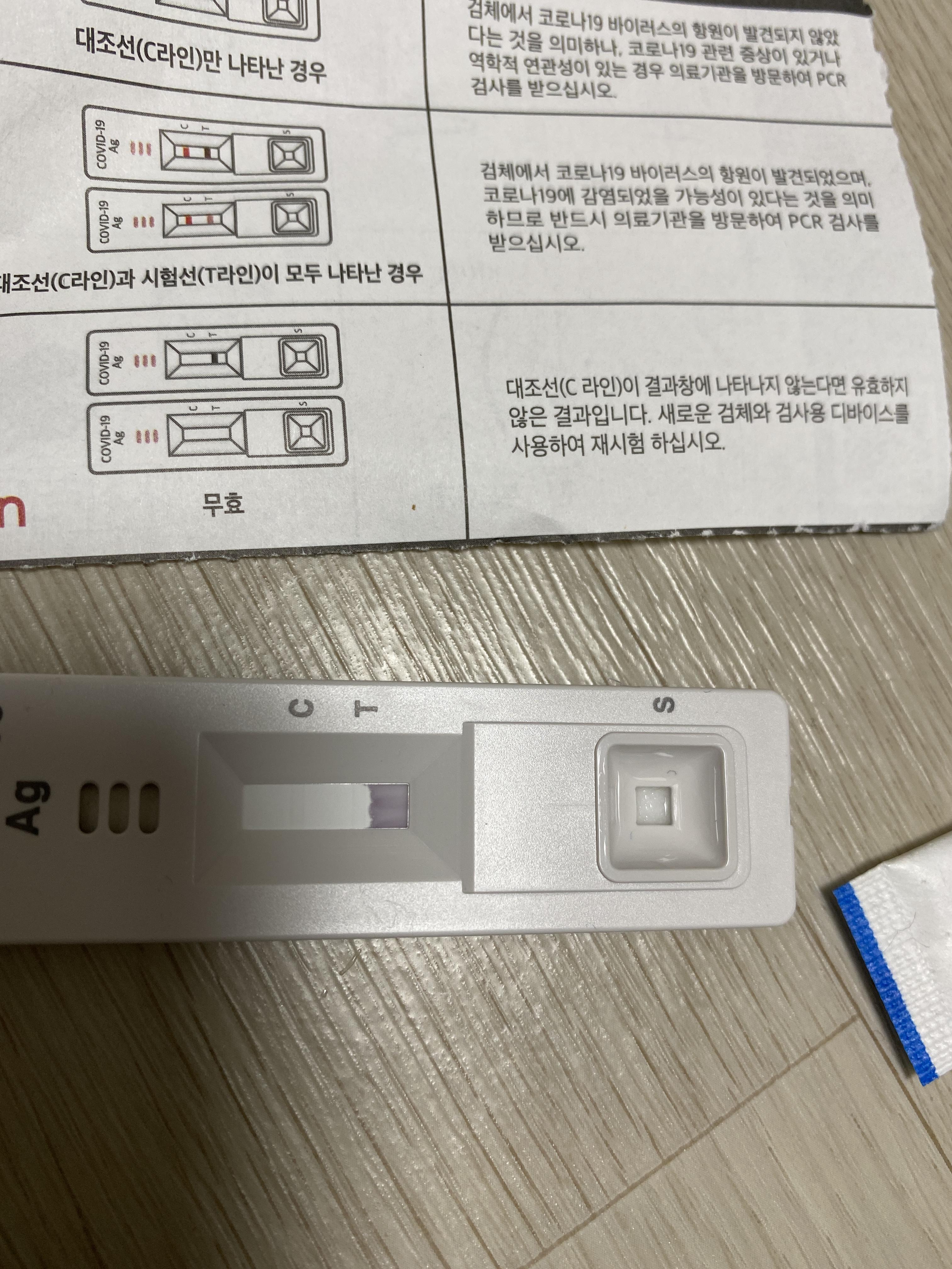 이제 제가 만약 로로나에 감염이 되었다면 C와 T에 빨간색 두 줄이 뜬다고 합니다.