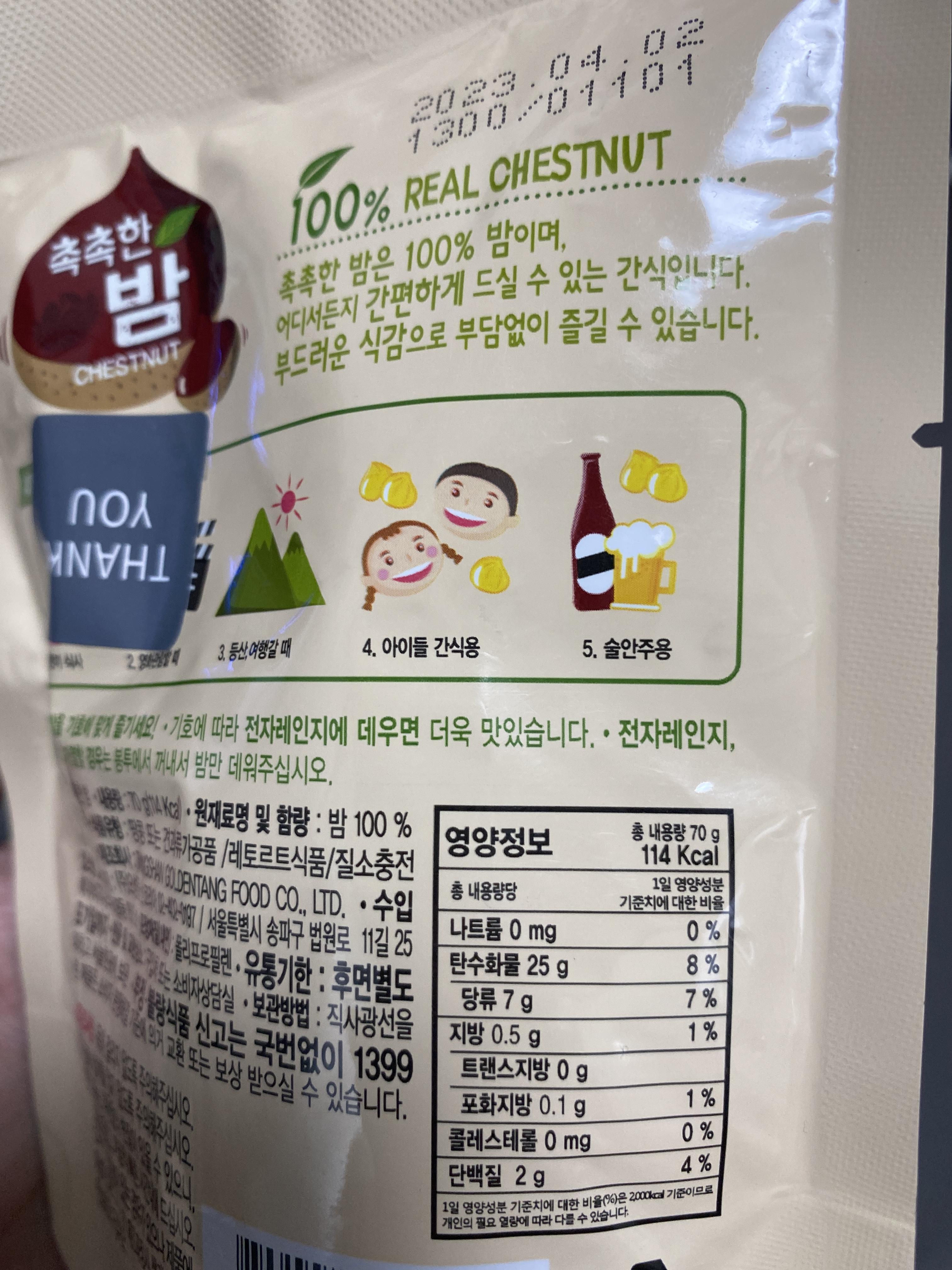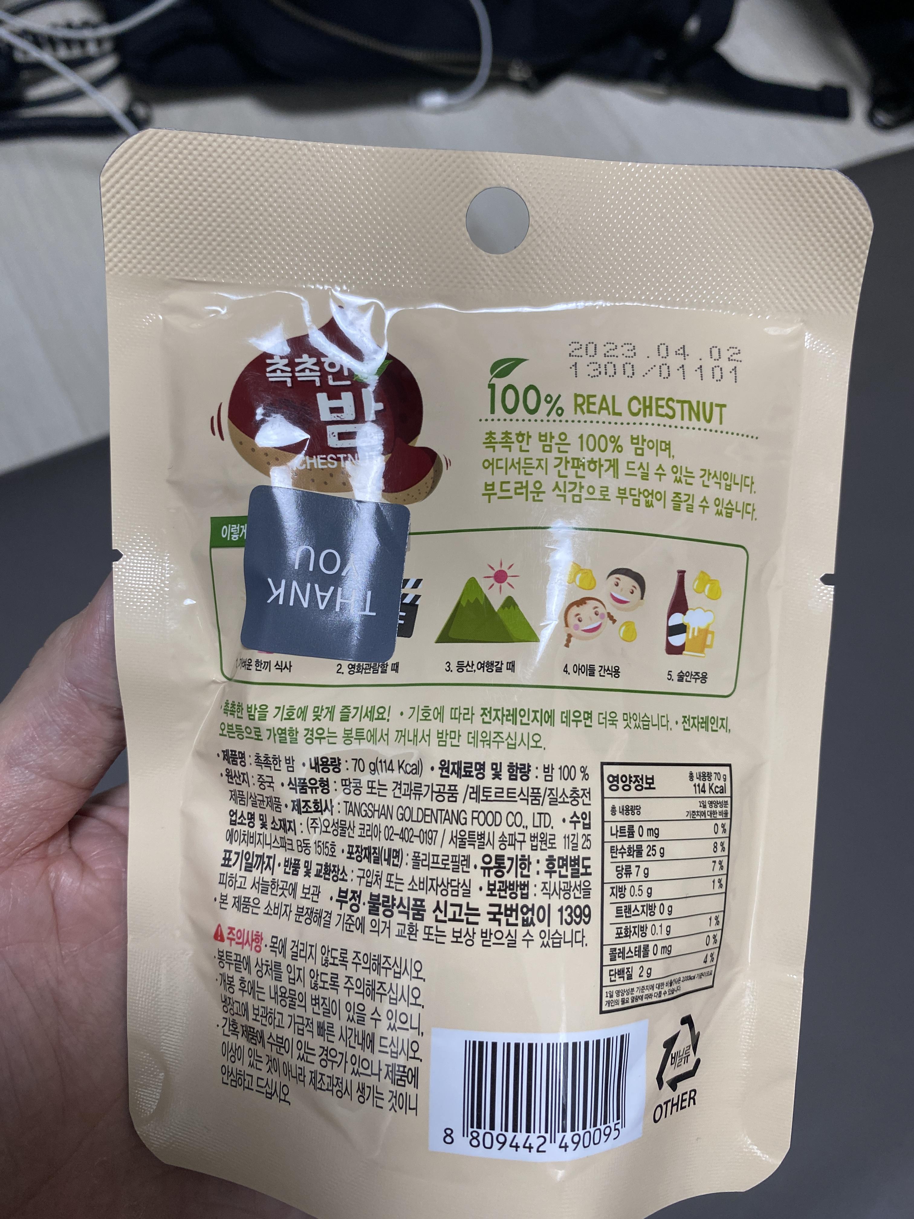 맛은 무첨가라서 그런가 달지도 않고 그냥 기본 밤 맛입니다
