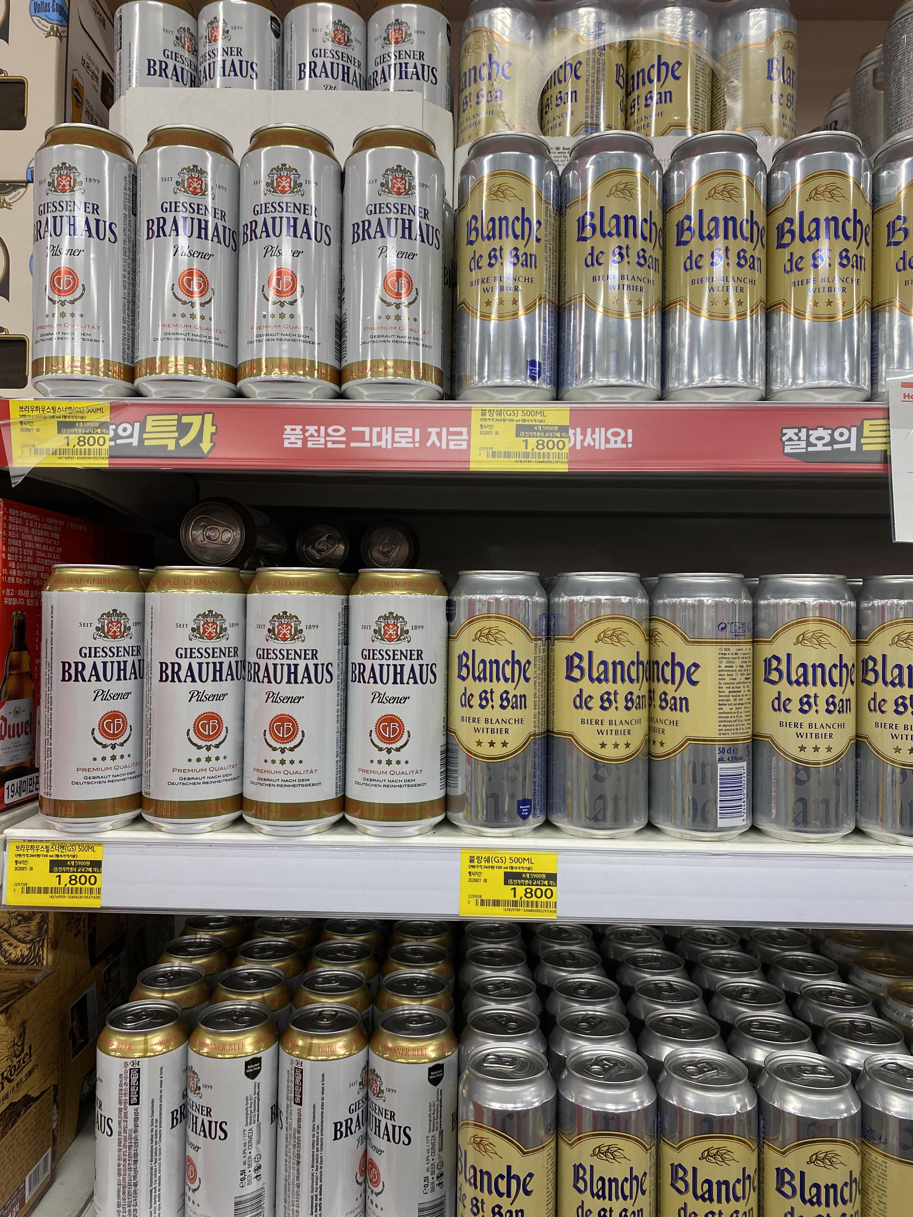 1개 500ml에 천원이면 국내 발포주 맥주보다 더 저렴한 가격입니다