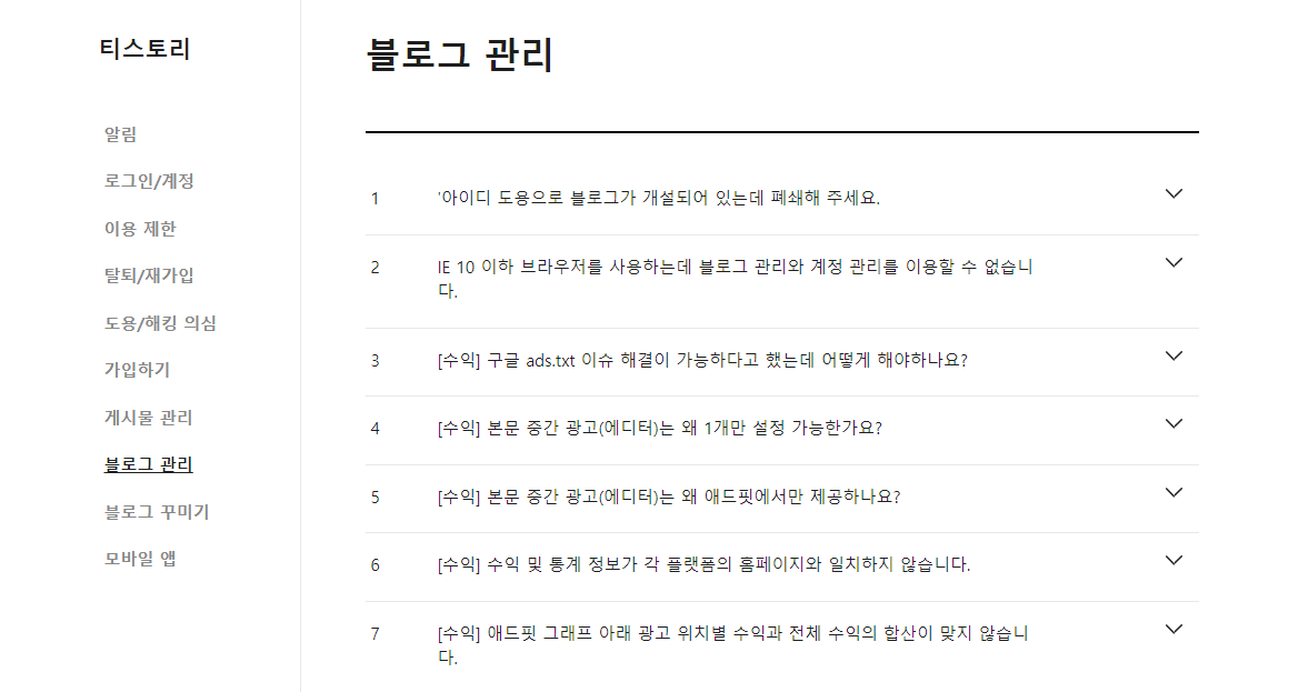 그리고 블로그 관리로 들어가신 다음에 가장 아래쪽에 보시면 문의하기가 있습니다.