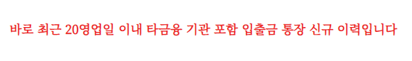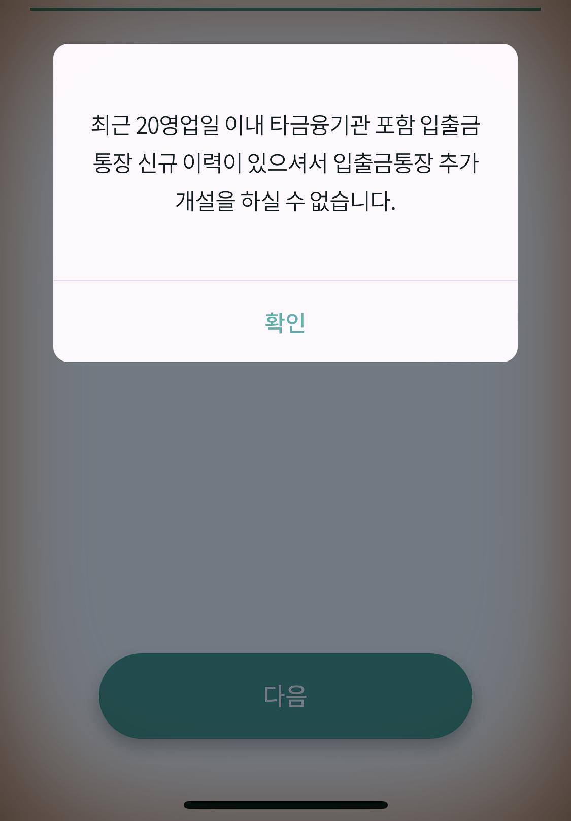 20 영업일 이전에 신규 통장을 만들었을 경우 신규 통장을 만들 수가 없습니다.