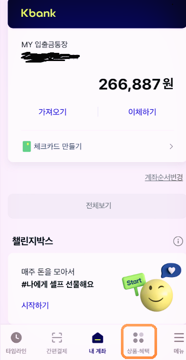 어플을 들어간 뒤에 상품.혜택으로 들어가줍니다