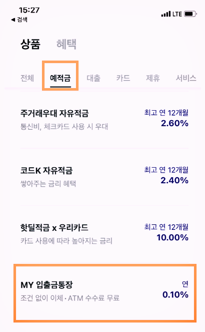 그리고 예적금 -> my 입출금으로 들어가줍니다