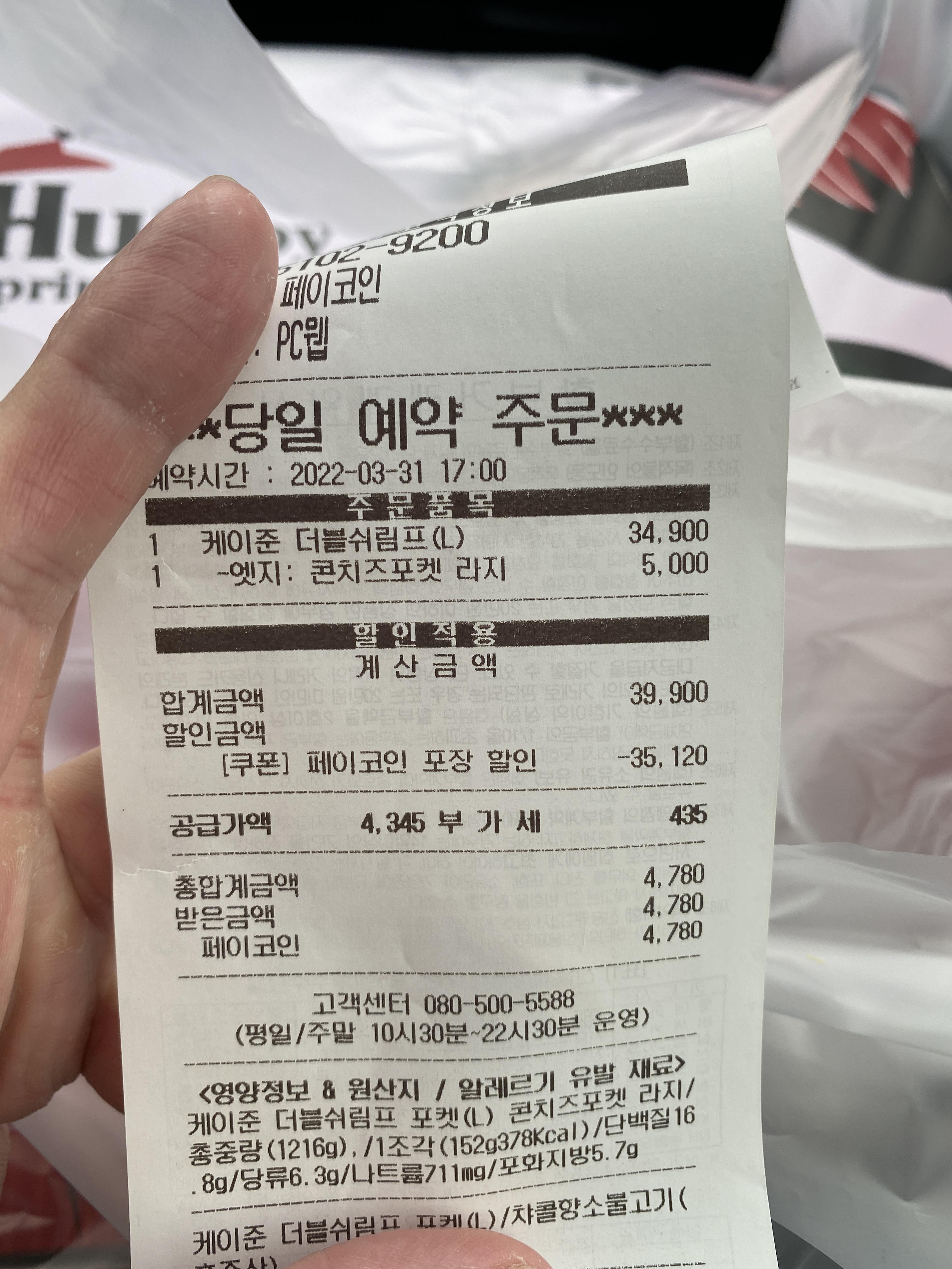 (콘 치즈 포켓은 추가 금액이 거의 5천원 정도 했던 것 같습니다)