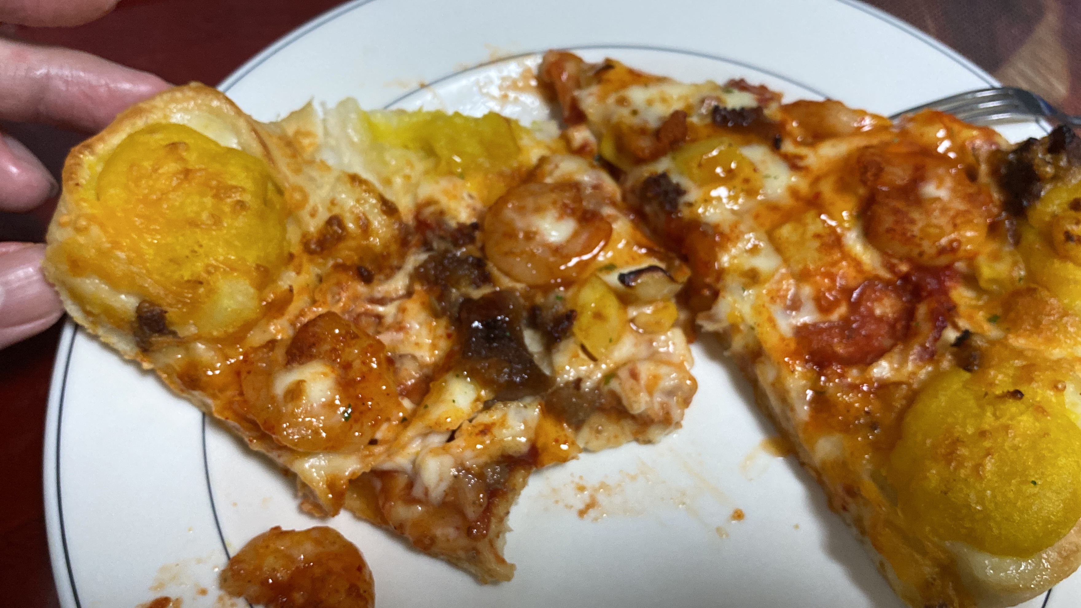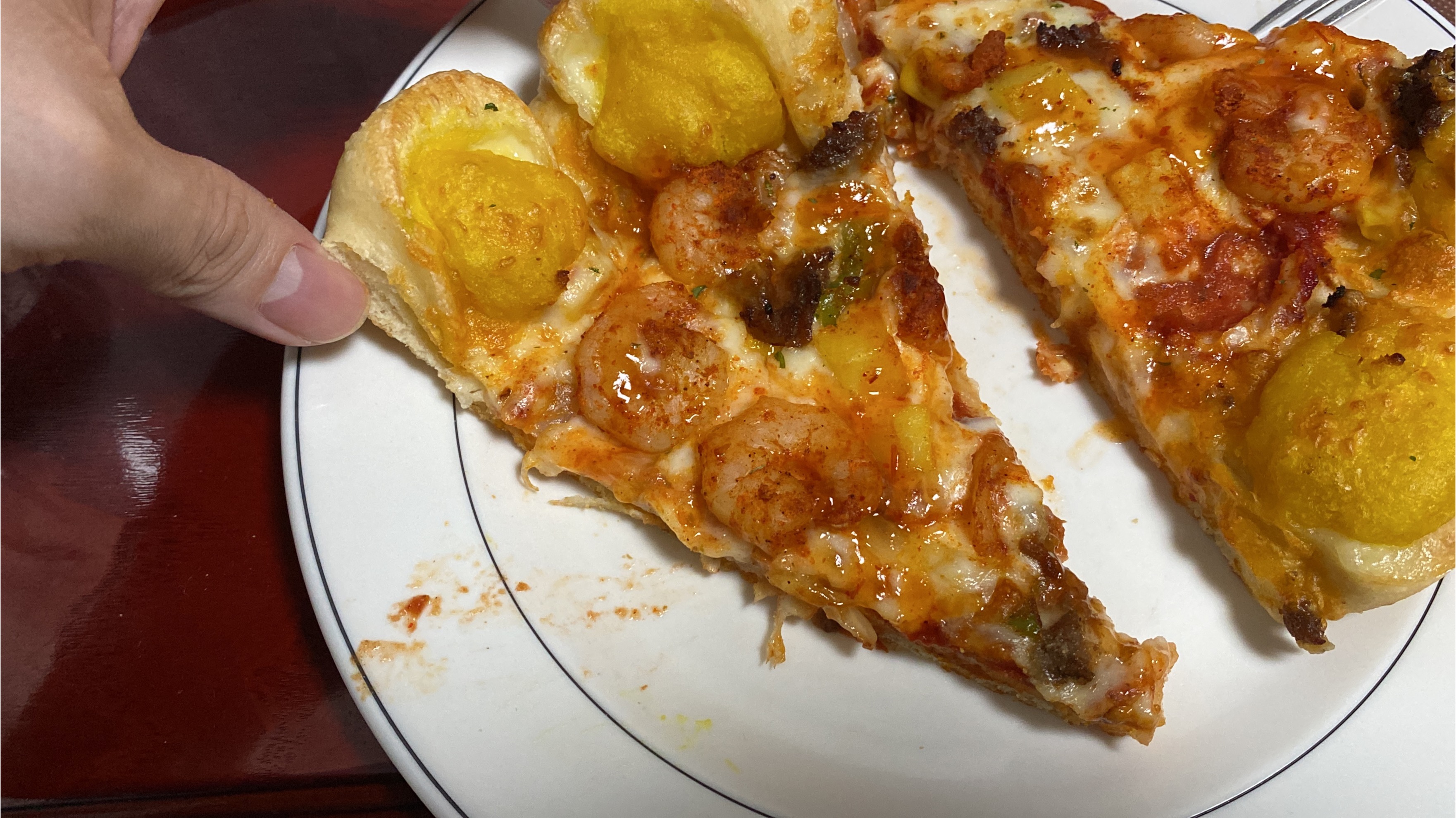 옥수수는 피자와 하나가 되는게 아닌, 맛을 추가해주는 서포터의 느낌이 듭니다