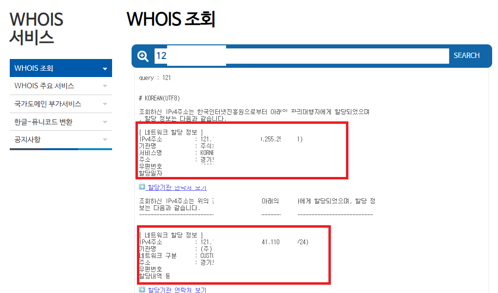 요기 들어가시면 아래와 같이 검색창이 뜨는데 여기서 아이피 조회가 가능해집니다