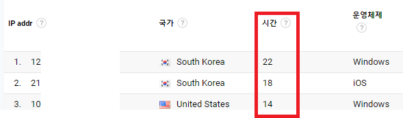 그리고 그 아래 세션시간이 짧으신 분들도 굉장히 빠르게 광클을 하신게 보이는데요