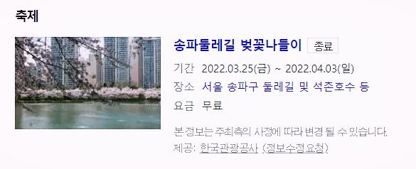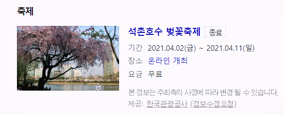 위에 벚꽃 나들이의 경우 정말 말 그대로 그냥 나들이 오기 좋은 축제로 보여집니다