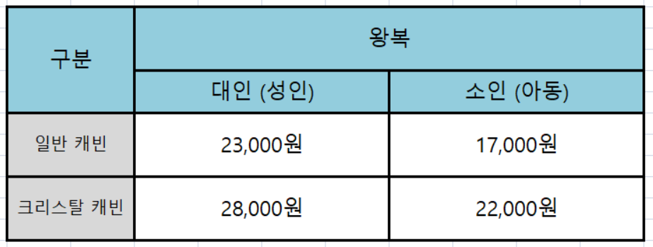 ※ 중학생의 경우 대인(아동) 요금으로 적용된다고 합니다