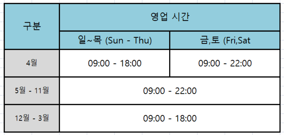※ 티켓 발권 마감은 영업시간 종료 1시간 전이라고 합니다
