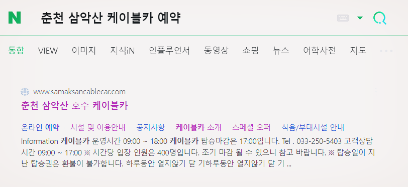 삼악산 케이블 카 예약하는 방법은 아주 간단합니다