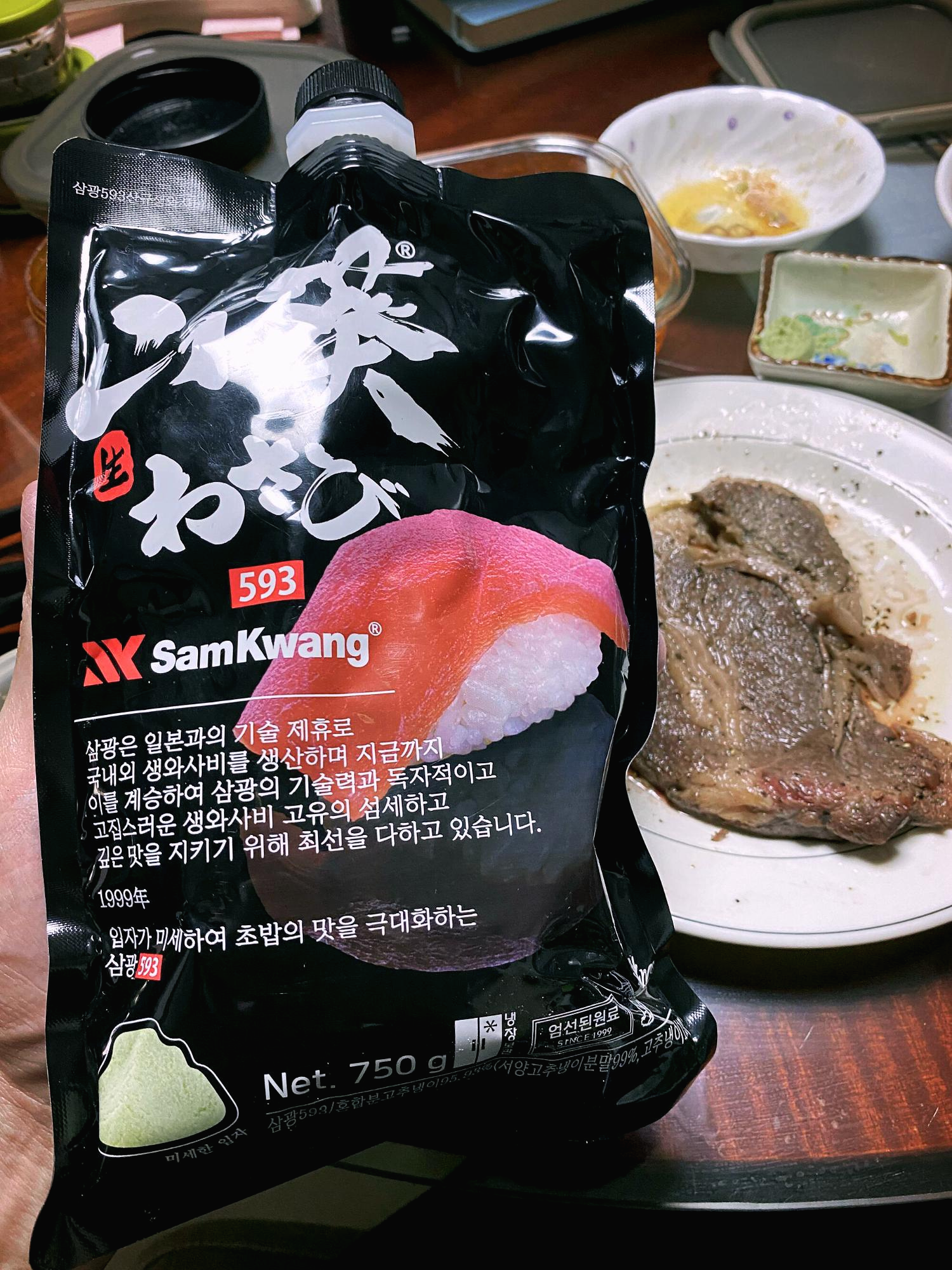 비싼 회나 초밥에 먹으면 와사비 향이 강하게 낫겠지만, 고기에 발라서 먹기엔 나쁘지 않은 매콤함 정도였습니다.