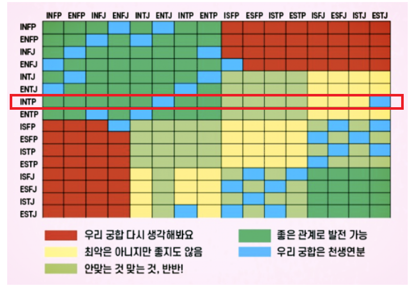 일단 전 INTP이기 때문에 해당 칸을 보기 좋게 빨간색으로 칠해놨습니다