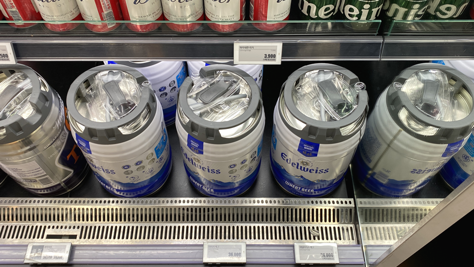 이마트, 홈플러스 모두 가봤는데 유일하게 롯데마트에서만 냉장 보관을 하고 있는 케그를 판매하더라구요