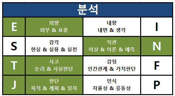 일단 ENTJ의 기본적인 분석을 보자면 아래와 같습니다.