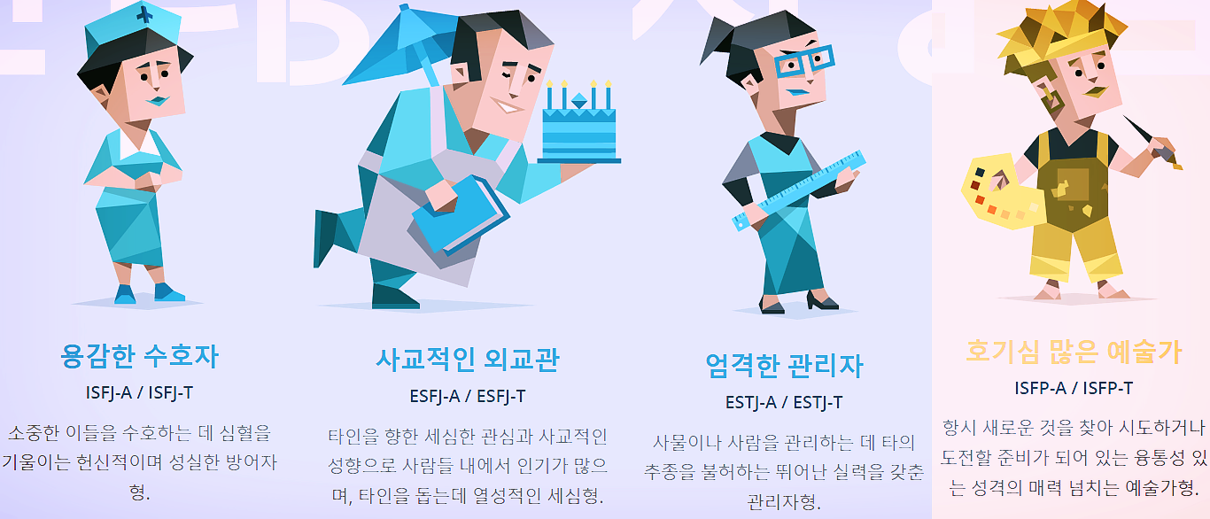 (정말 자세한 본인의 유형을 알아보고 싶으시다면 아래 사키노르바 버전의 MBTI 검사 추천드립니다)