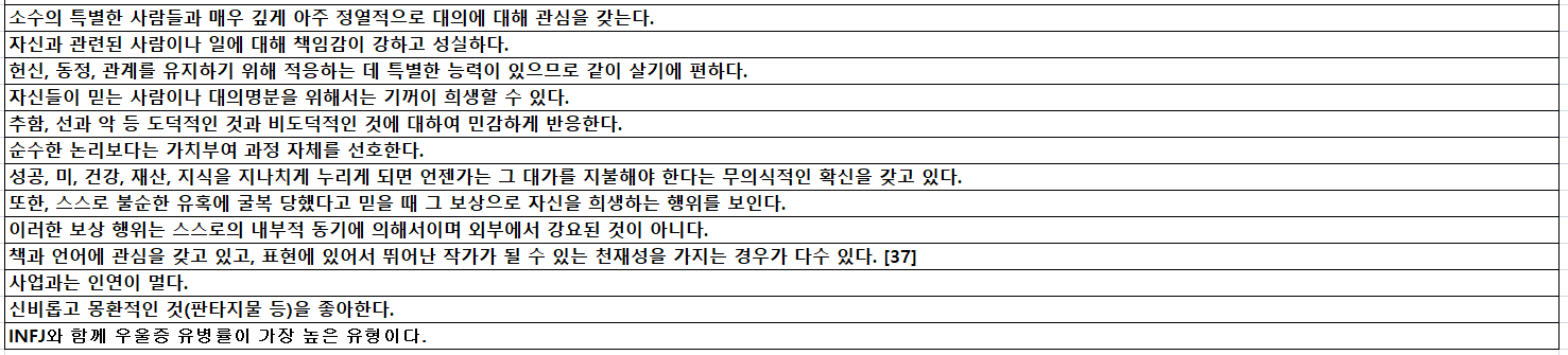 2. INFP 한줄 평가
