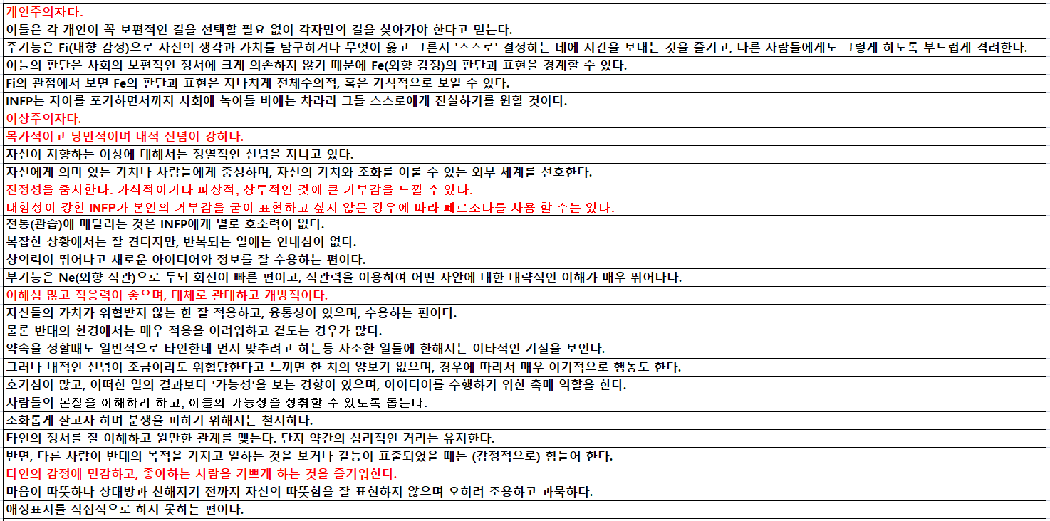 1. INFP 기본적인 성격 분석