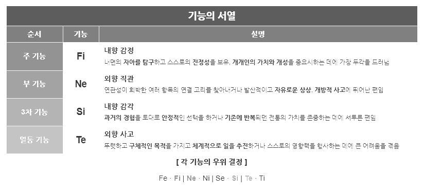 이러한 성향에 따른 기능의 순위는 아래와 같습니다