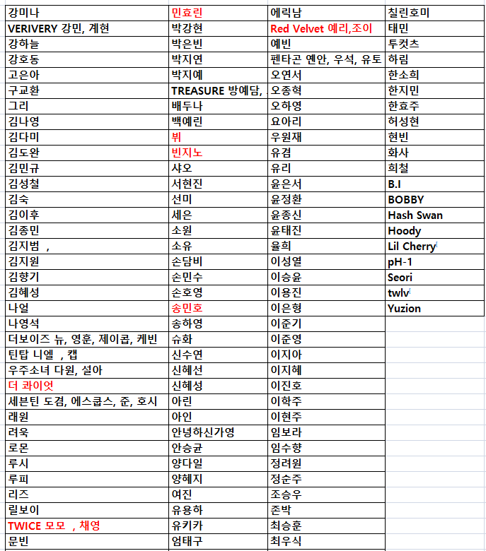 래퍼들도 많고 아이돌도 많은 인프피 연예인들은 아래와 같습니다.