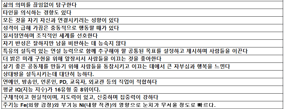 사회를 이끌어가는 리더들은 대부분 엔프제이라고 해도 과언이 아닐정도로 리더들이 많은 유형인데요