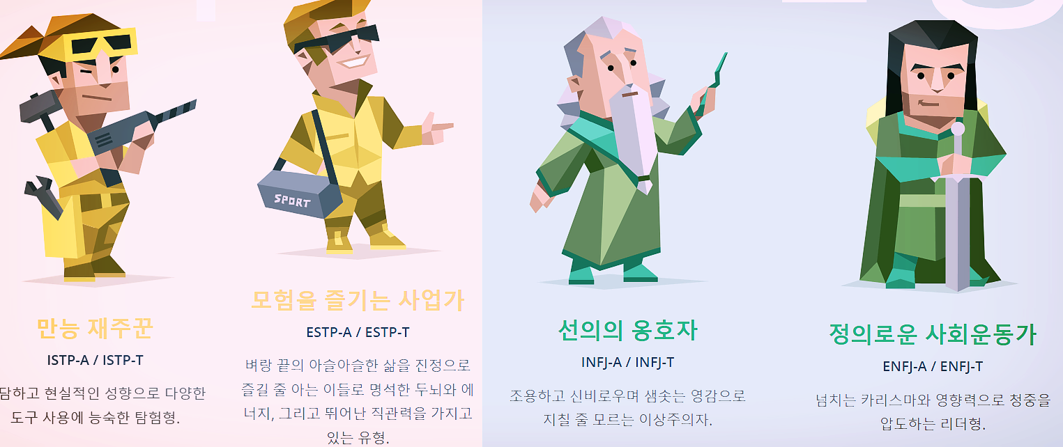 그렇기 때문에 사회 인격학 유형으로 정 반대되는 유형의 사람에게 오히려 더 끌릴 수 있는 법이니 위에 궁합을 절대적으로 보시기 보단 재미로 보시는 걸 추천 드립니다.