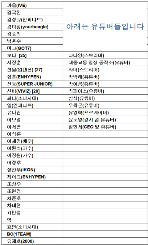 연예인 뿐만 아니라 유튜버들도 있음을 알 수 있었습니다