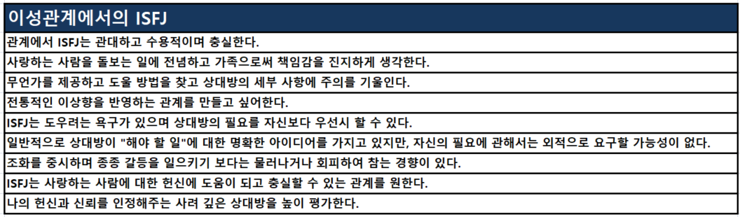 ISFJ는 확실히 매력적인 유형인 것 같습니다.